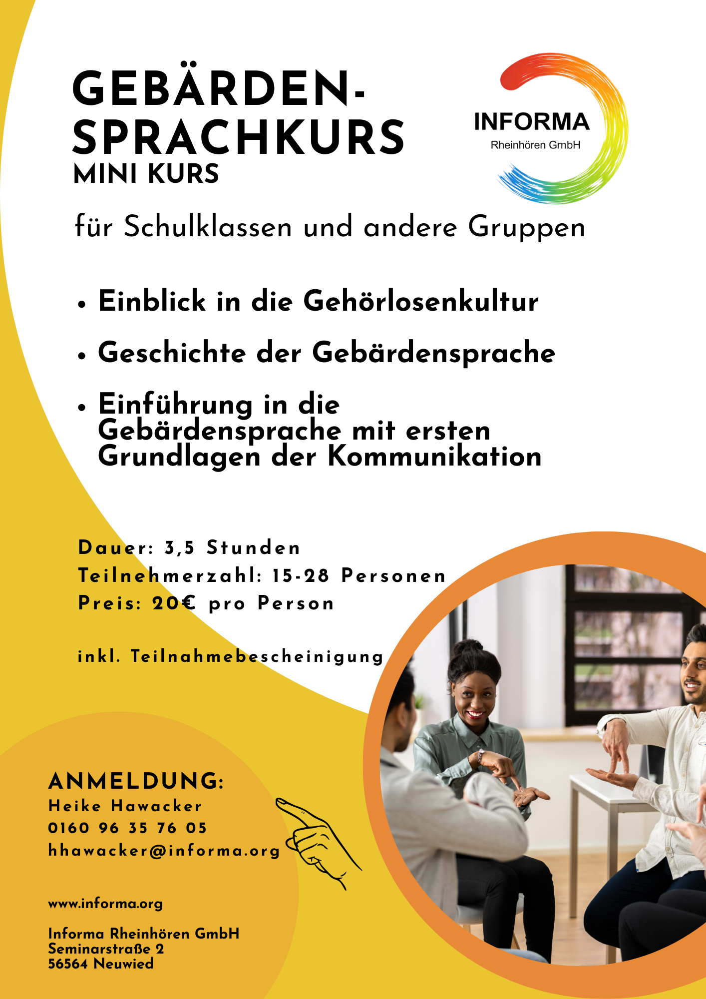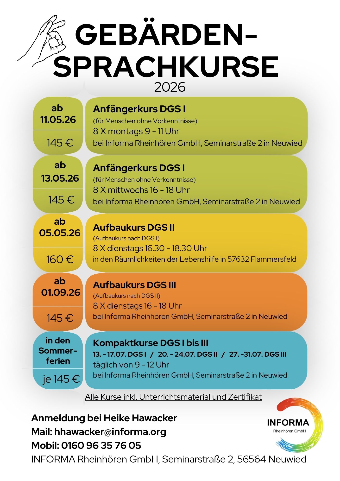 Wir bieten laufend Kurse in Deutscher Gebärdensprache an.